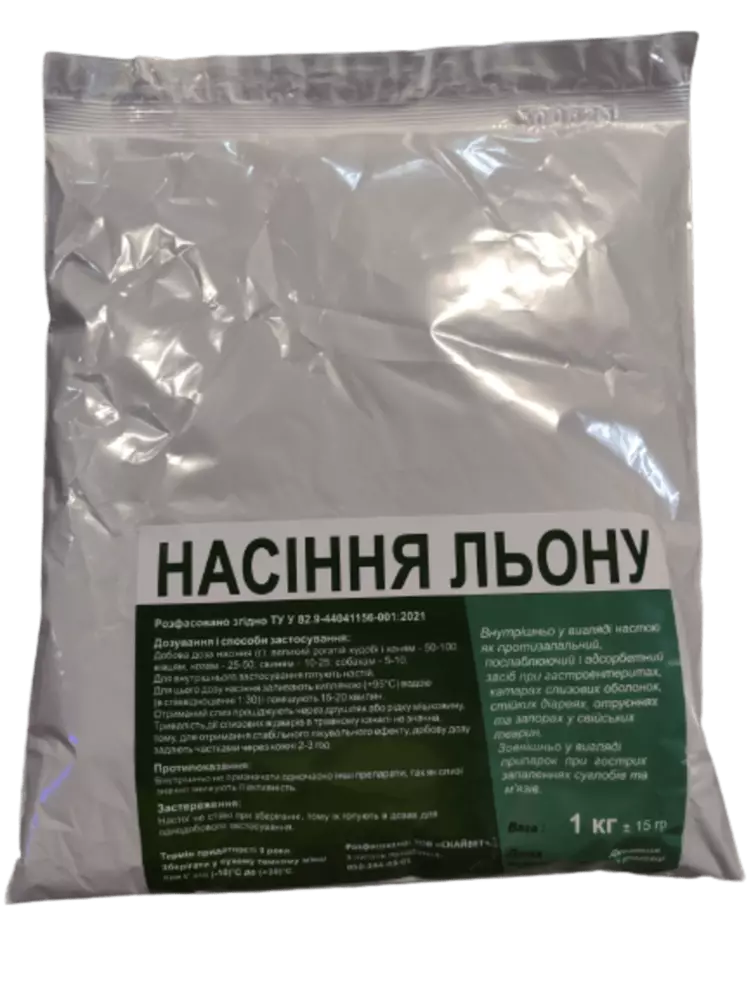 СКЛАД. Чисті насіння льону, зрілі і висушені до 13% вологості.