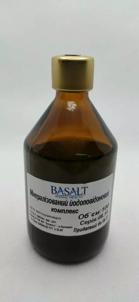 Опис: Розчин червоно-бурого кольору із специфічним запахом. Склад: До складу препарату входить йодополимерный комплекс. Масова доля активного йоду складає 1%. Фармакологічні властивості: Йодоповидон 1% - противоэндометритный препарат. Йод, що входить до складу препарату, у вигляді йодополимерного комплексу має протимікробну, протигрибкову, протизапальну і терпку дію. Йодоповидон 1% має широкий спектр дії, активний відносно неспоротворних мікроорганізмів(виключаючи мікобактерії), вірусів, грибів. У основі протимікробної дії йоду лежить здатність порушувати обмінні процеси збудників. Проникаючи в протоплазму клітин, йод взаємодіє з аміногрупами білків, пригнічує життєво важливі ферментні системи. При взаємодії йоду з рідиною протоплазми клітин утворюється активний кисень, який чинить сильну окислюючу дію. Цим пояснюється також згубна дія йоду на гриби.Дозування: Препарат застосовують для профілактики і лікування эндометритов в корів, кобил, свиней, кіз і овець. Для профілактики ендометритів(у разі патологічних пологів після надання родопомочі, затримання посліду та ін.) Йодоповидон 1% вводять внутрішньоматочний двократно(у 1-й і 2-й день після отелення) в наступних дозах: - коровам, кобилам : 150,0 - 200,0 см³; - свиноматкам: 150,0 см³; - козам, вівцям : 50,0 - 80,0 см³. При гострих ендометритах препарат вводить внутрішньоматочний в дозі 25-30 см /100 кг маси тіла тварини один раз в добу до клінічного одужання. При хронічних ендометритах препарат вводить внутрішньоматочний в дозі: